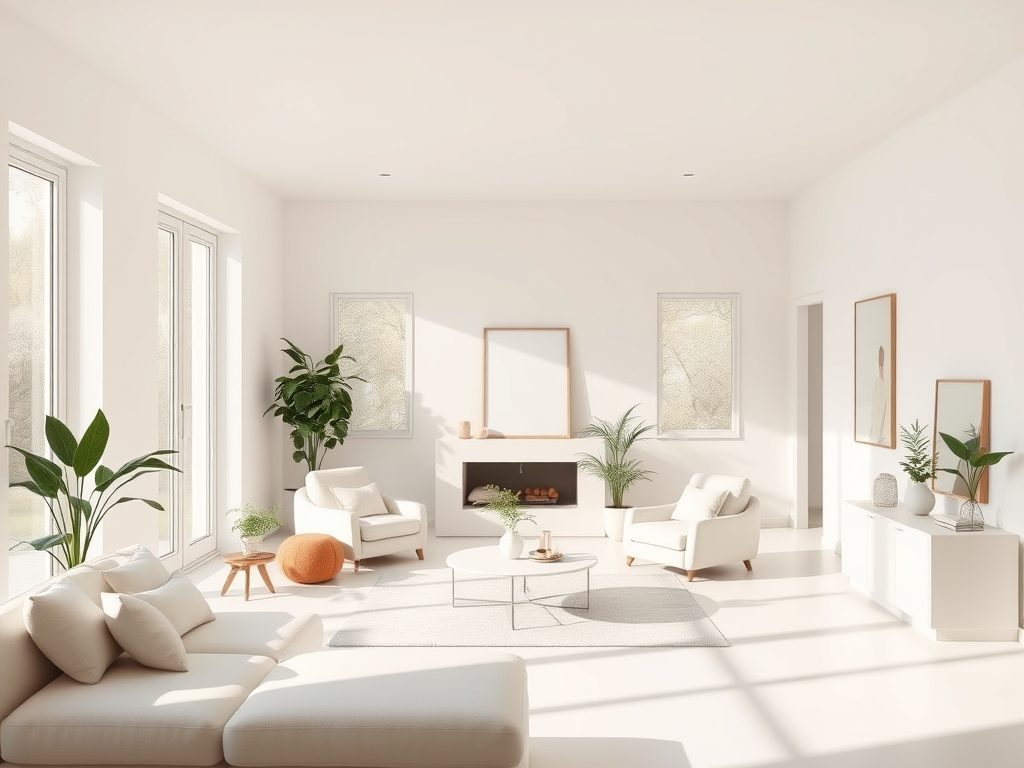 Rośliny doniczkowe ożywiają przestrzeń i w zestawieniu z odpowiednim oświetleniem, szczególnie ciepłym światłem punktowym, tworzą harmonijną atmosferę. Unikaj stosowania wyłącznie białych kolorów na dużych powierzchniach, gdyż mogą one powodować efekt chłodu i pustości. Zapewnij równowagę między minimalizmem a przytulnością, stosując różnorodne tekstury i kolory.